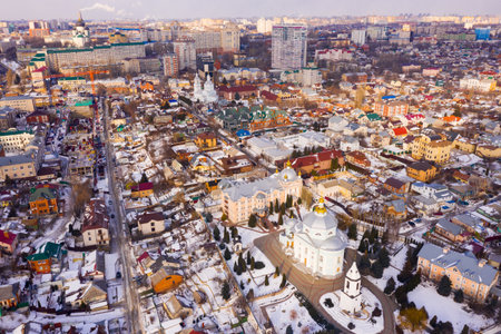 Alekseevo-Akatov monastery and the old residential quarters in the winter in Voronezh