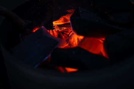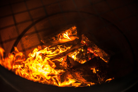 Barbeque grill fire. Burning wood and coal in the grill and BBQ.