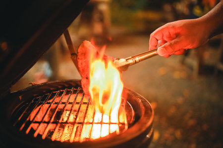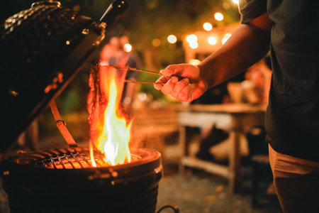 Summer BBQ Party, Grilling Fresh Meat and Tasty Steak Over Hot Charcoal Flames, Delicious Smoke and Heat Infusing Air, Creating a Dinner Experience