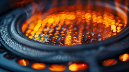 An extreme closeup of the heating element of an air fryer highlighting its powerful and rapid heating capabilities