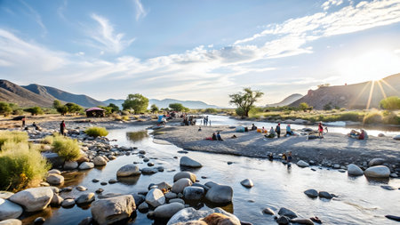 Picnic spot at River of Joy near Bloemfontein in the Free State Province of South Africa. The Modder River is visible