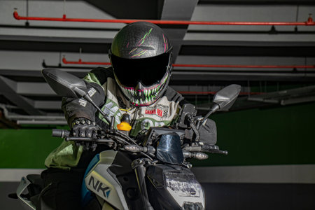 Motorcyclist in equipment and helmet