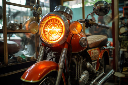 Vintage style motorcycles meeting in garage