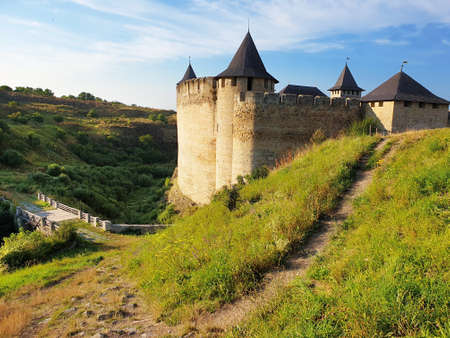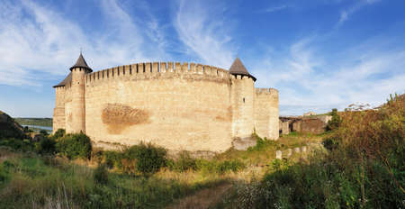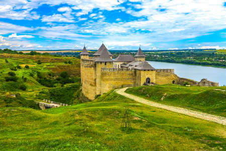 Beautiful view of The Khotyn Fortress. The most remarkable medieval landmark of central Ukraine. Travelling across Ukraine.