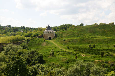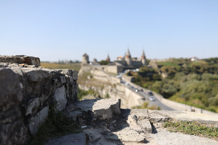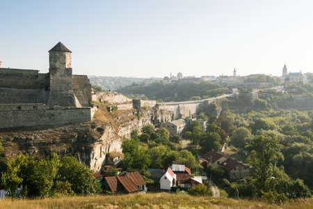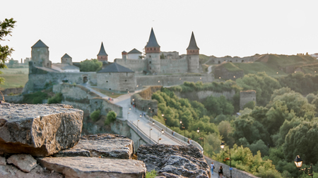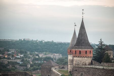Old Kamenetz-Podolsk fortress near Kamianets-Podilskyi town. Ancient beautiful view of medieval castle in Kamenetz-Podolsky, Khmelnitsky region