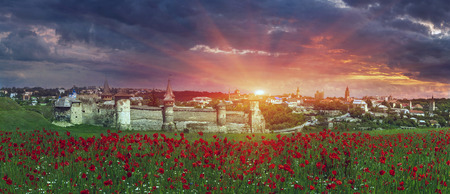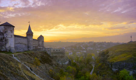 Old fortress on the background of a sunset in the ancient city of Kamenets-Podolsk, Ukraine
