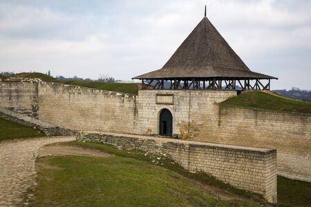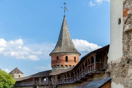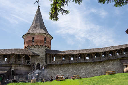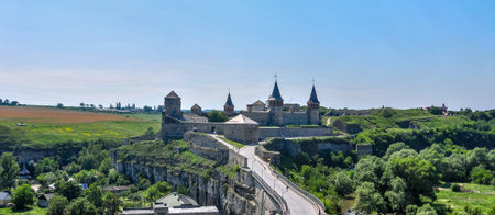 Kamyanets-Podilsky, Ukraine - May 17, 2021: The medieval fortress located in the old town of Kamianets-Podilskyi the capital city the historic region Podillya of west-central Ukraine