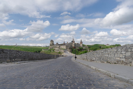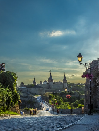 Road leading to the medieval castle. Ukraine, Kamenets-Podolsk