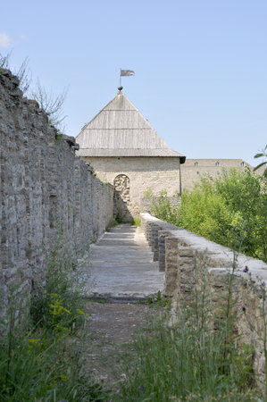 Ivangorod fortress, fighting course on a wall to the Wide tower