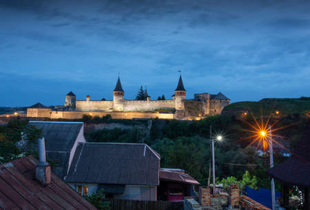 View on the castle in Kamianets-Podilskyi in the evening. Ukraine