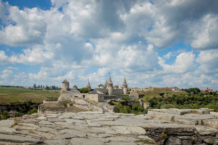 Beautiful castle on a mountain hill. Kamenetz-Podolsk, one of the historical monuments of Ukraine.