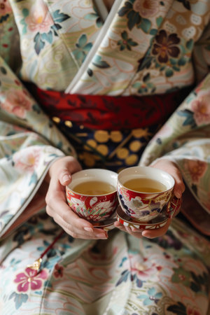A japanese tea ceremony kimono matcha tea bowl hands tradition culture ritual serene floral