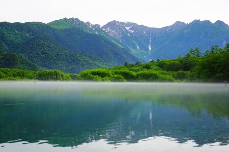 Early morning at spring Kamikochi Taisho-ike pond,nagano,japan