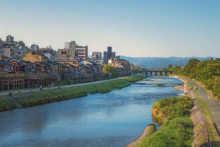 Kyoto, Japan- 11 Jan, 2020 : Beautiful scenery of Kyoto City with river in Japan
