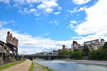 Scenery of the Asano river in Kanazawa city in Japan