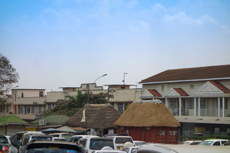 Kampala, Uganda - May 20, 2022: Car park in Kampala. cloudy day in May