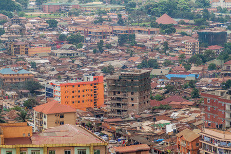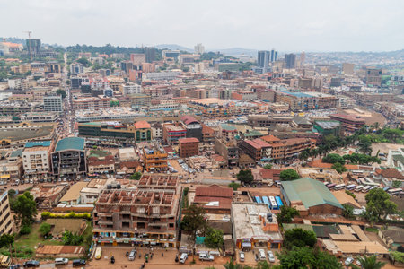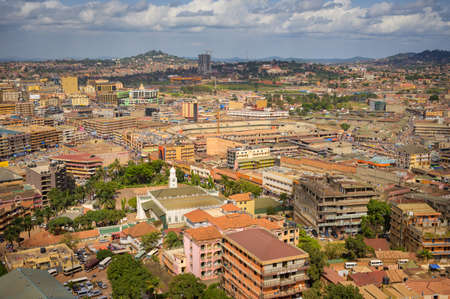 Kampala, Uganda - June 02, 2022: Aerial view of Kampala on a cloudy day