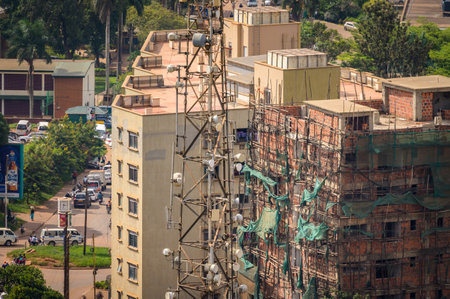 Kampala, Uganda - May 20, 2022: Construction work in Kampala in June, big house