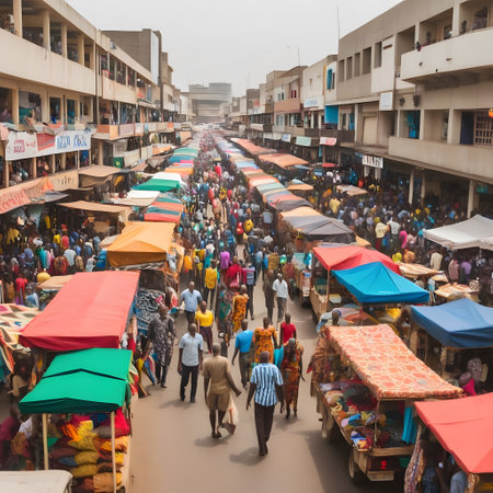 Large colorful market in Africa with stalls and traders