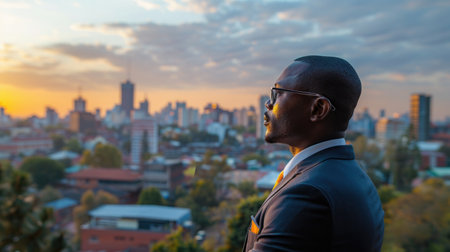 Portrait of a smiling african man at sunset in the city