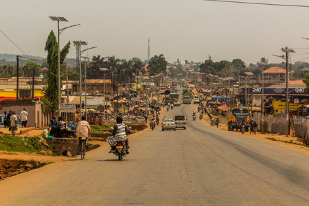 MBALE, UGANDA - FEBRUARY 25, 2020: Paved road entering Mbale, Uganda