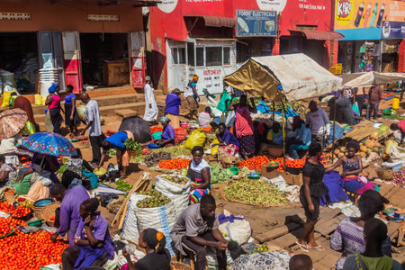 KAMPALA, UGANDA - MARCH 7, 2020: Fruit and vegetable market in Kampala, Uganda