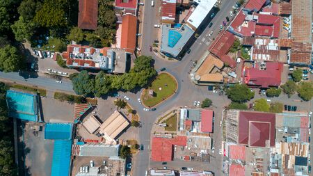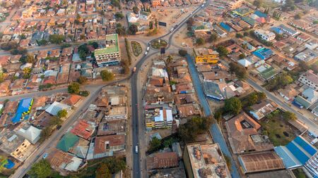 Kampala, Uganda - May 20, 2022: Busy street in Kampala in June, aerial view