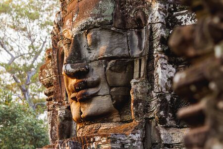 An ancient king face of temple in angkor thom, Siem Reap, Cambodia
