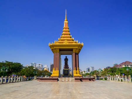 the Statue and Monument of King Norodom Sihanouk at the Sihanouk Bouelvard in the city of Phnom Penh of Cambodia. Cambodia, Phnom Penh, November, 2017,