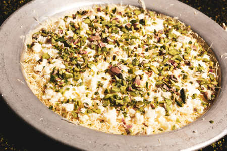 Knafeh or Kataif traditional Middle Eastern desert on a tray
