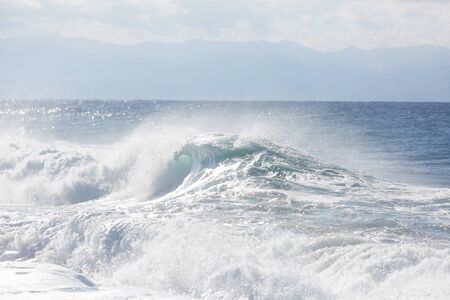 Powerful ocean wave with a lot of spray on the top. Oahu, Hawaii