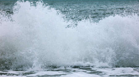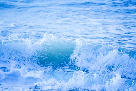 Blue surge of Mediterranean Sea; There are foam and many splashes.