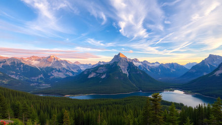 Sunset in Banff National Park, Alberta, Canada. Panoramic view of the Canadian Rockies.
