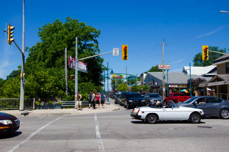Grand Bend, Ontario, Canada - 02 July 2016: Traffic and cars at the intersection for going to the beach as editorial