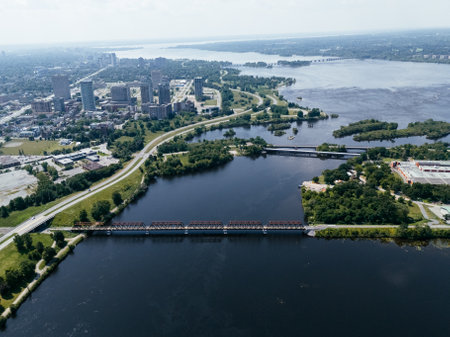 Aerial city view of the skyline of downtown Ottawa, Parliament buildings Ottawa, Ontario Canada.