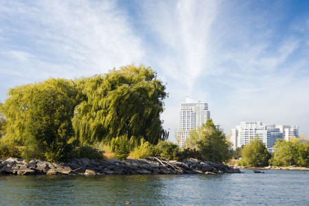 A view of the buildings on the Lake Ontario in Toronto, Canada.