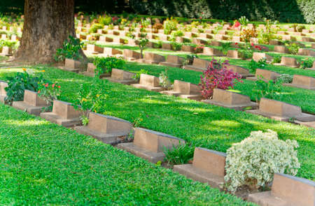Rows of Confederate Veterans tombstones during World War 2 in Kanchanaburi province, Thailand