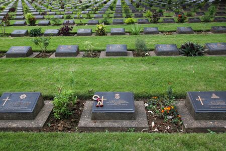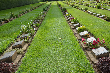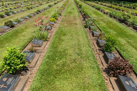 Chungkai War Cemetery this is historical monuments where to respect prisoners of the World War 2 who rest in peace here, Kanchanaburi Province, Thailand