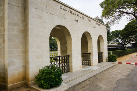 Kanchanaburi, Thailand 12.28.2019: Kanchanaburi War Cemetery or Don-Rak War Cemetery is the main prisoner of war (POW) cemetery for victims of Japanese imprisonment while building the Burma Railway.