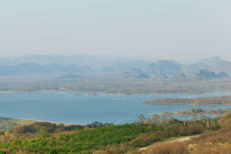Nature scene of Srinagarind Dam with cloudy sky at kanchanaburi ,Thailand