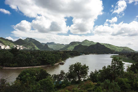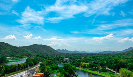 beautiful landscape of River Kwai from the historical bridge at Kanchanaburi, Thailand