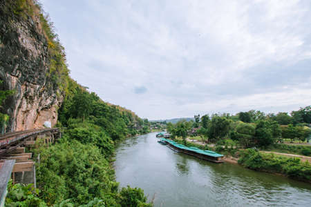 The Burma Railway is known as the Death Railway. The railway was built beside the cliff and Khwae Noi river in Kanchanaburi Thailand.