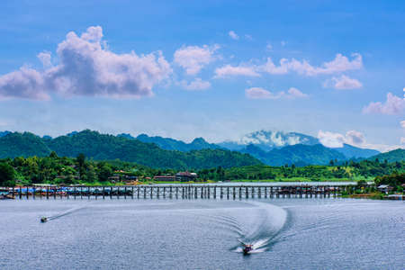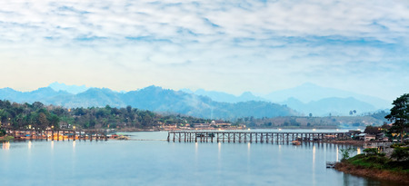 Mon wood bridge, across river , songkalia river, Sangkhlaburi Kanchanaburi, Thailand