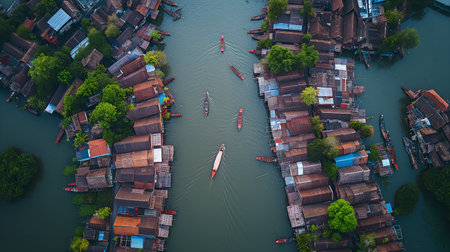 Floating Bazaar: A Bustling Marketplace Seen from Above, Capturing Thai Traditions. AI-generated