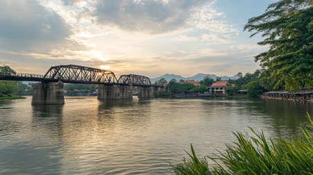 The historic bridge over the River Kwai, a significant World War II landmark in Kanchanaburi.