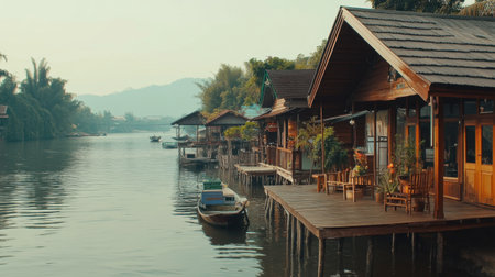 The charming wooden houses along the banks of the Kwai River, a serene escape from the city.