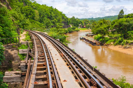 Railway on a Bridge over the River Kwai, Kanchanaburi, Thailand.