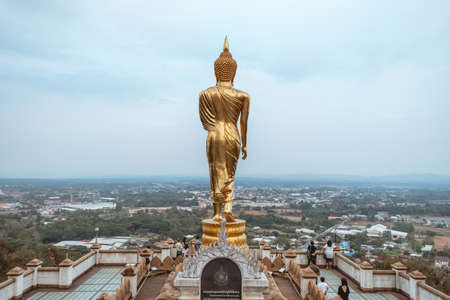 NAN, THAILAND - DECEMBER 27, 2019: Big golden standing Buddha at Wat Phra That Khao Noi or Phra That Khao Noi Temple, located in Nan province in northern of Thailand.