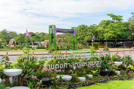 Nakhon Pathom ,Thailand - 2 December, 2020: agricultural fair backdrop and label for show in festival area of Kasetsart University