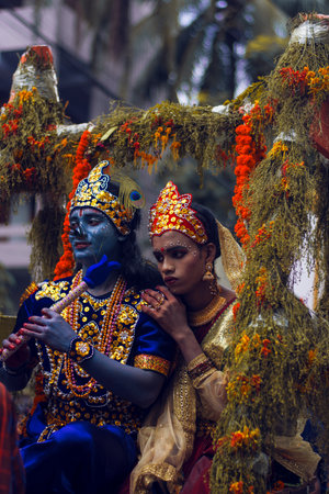 people and children dressed as radha krishna at hindu festival